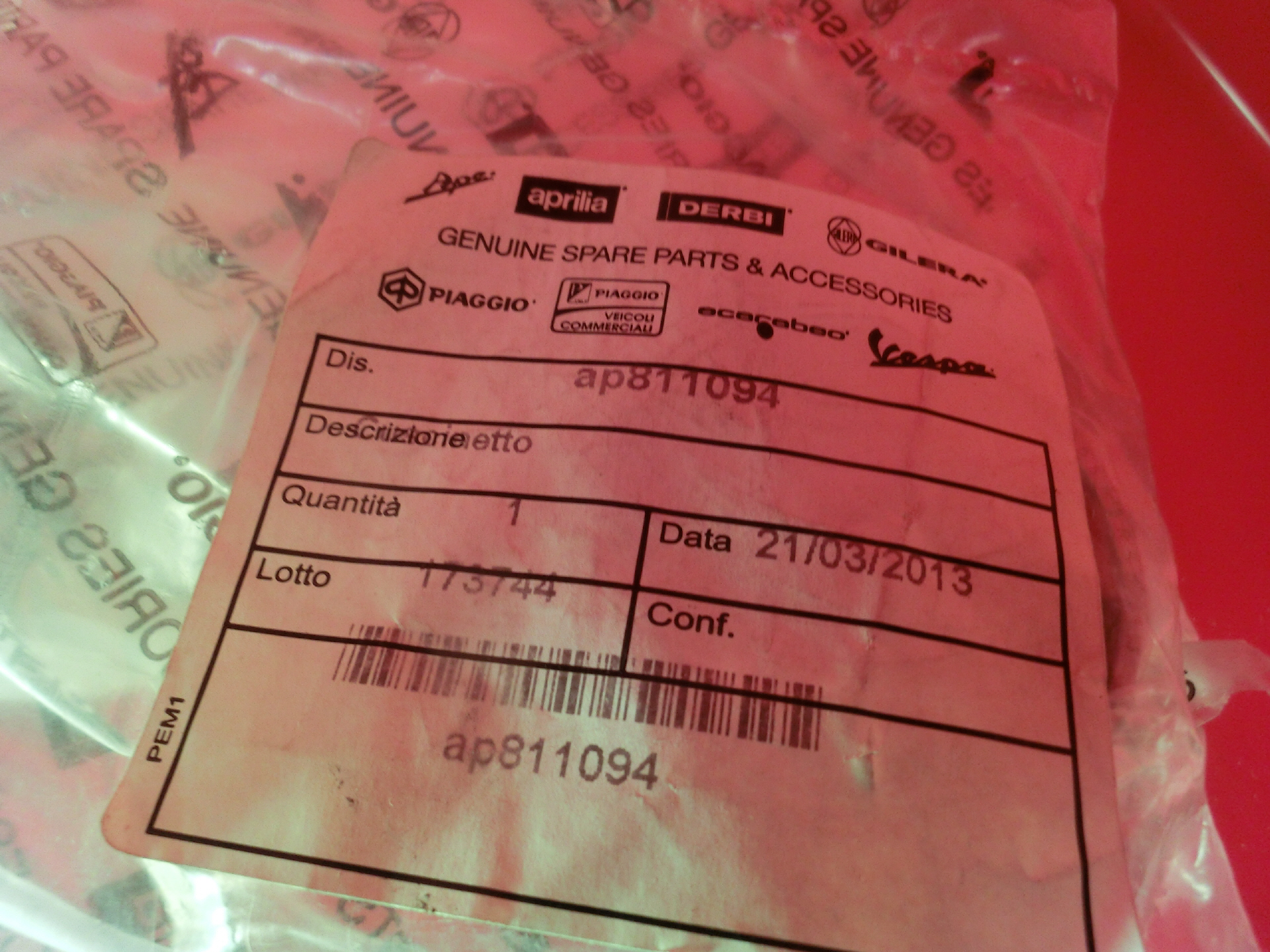 Aprilia Belag Artikel-NR. CM327031