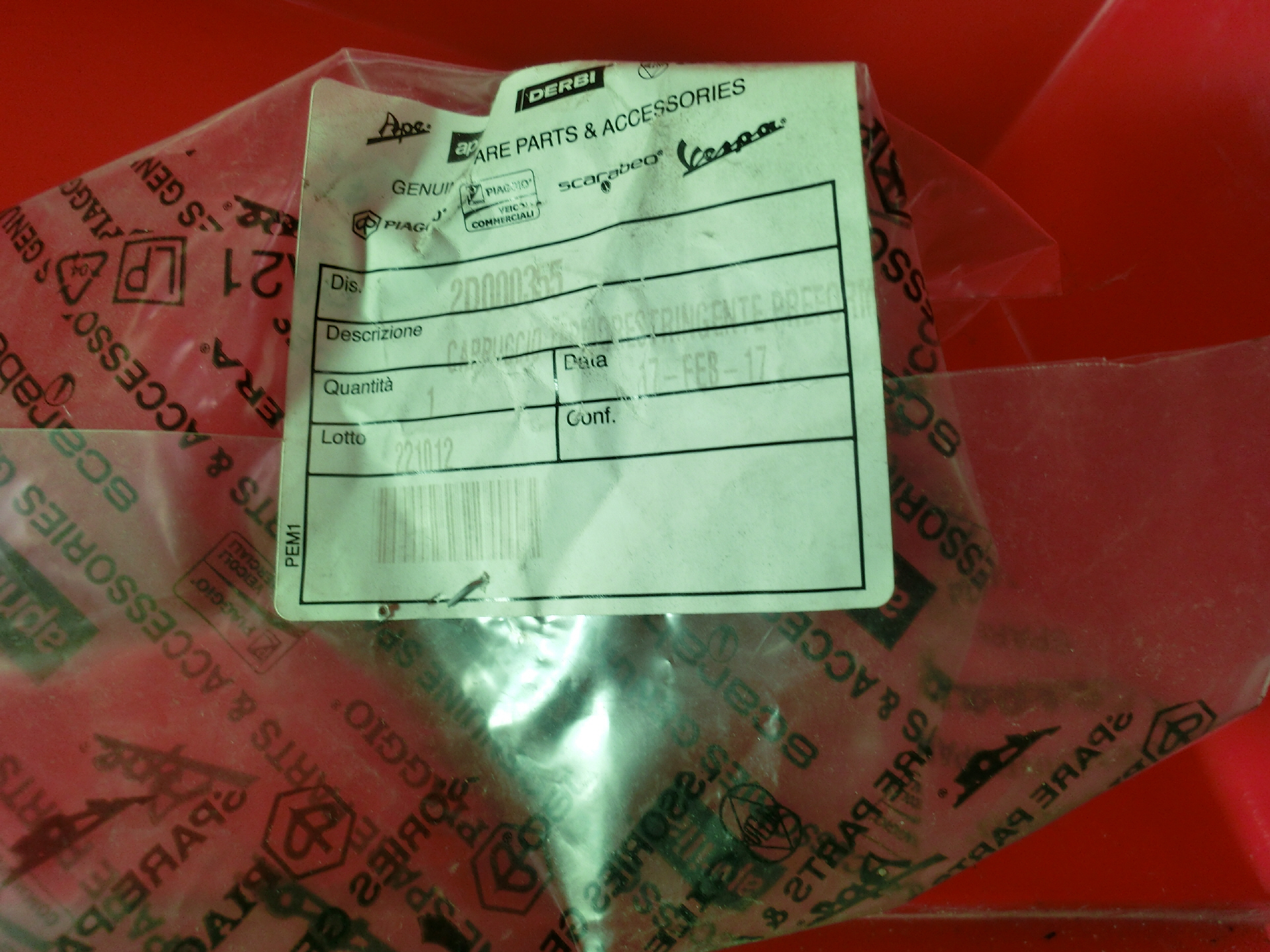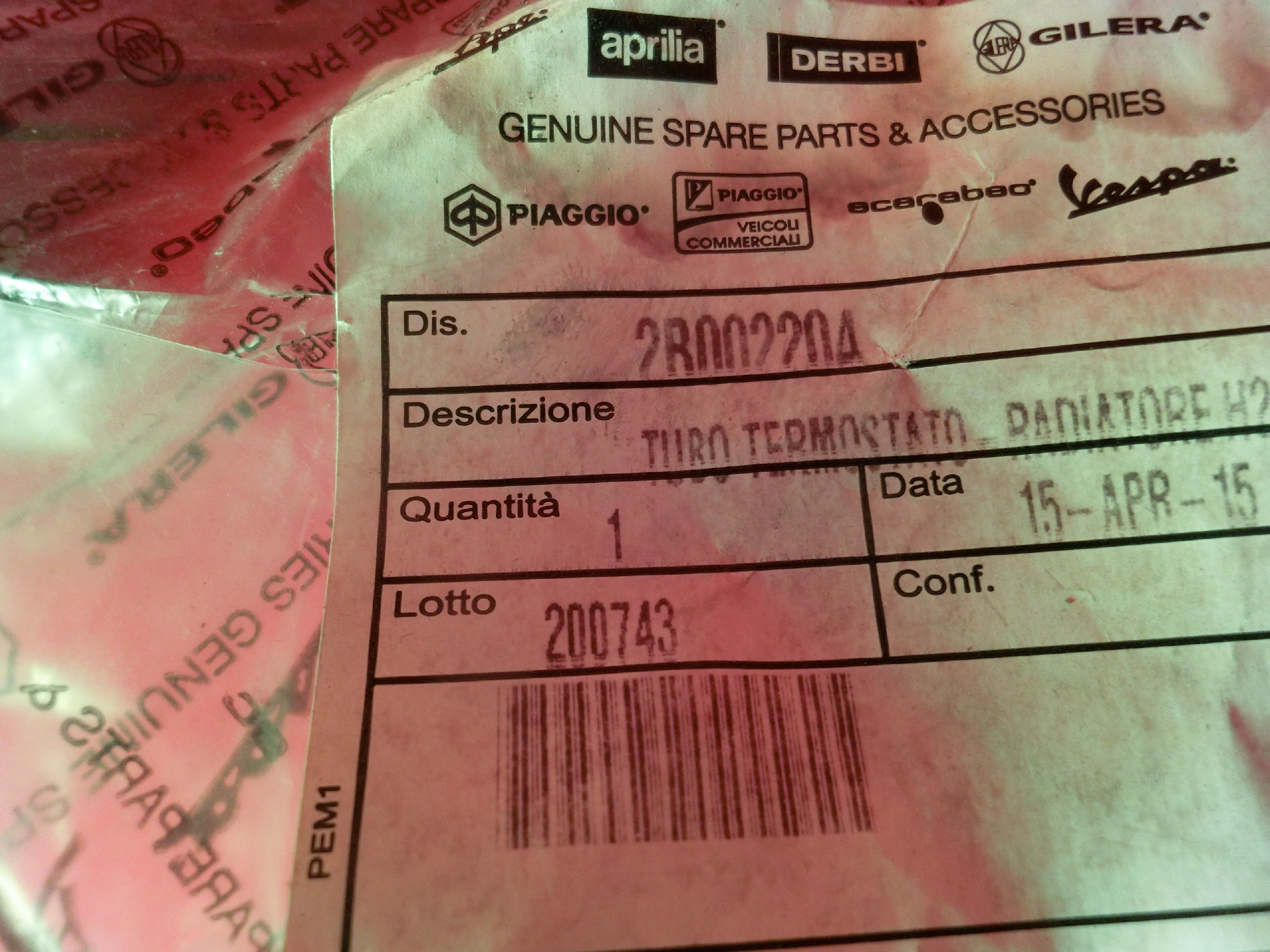 SLS Anschluss am Motor / Deckel Artikel-Nr. 857044 1 Stück Hersteller: Aprilia Zustand : Neu Farbe: original Lagernummer:60-3